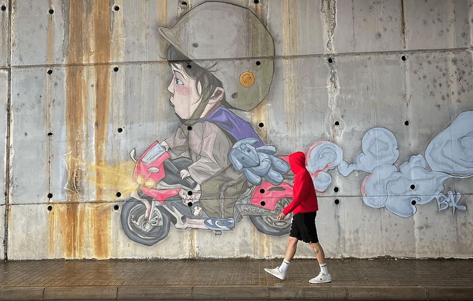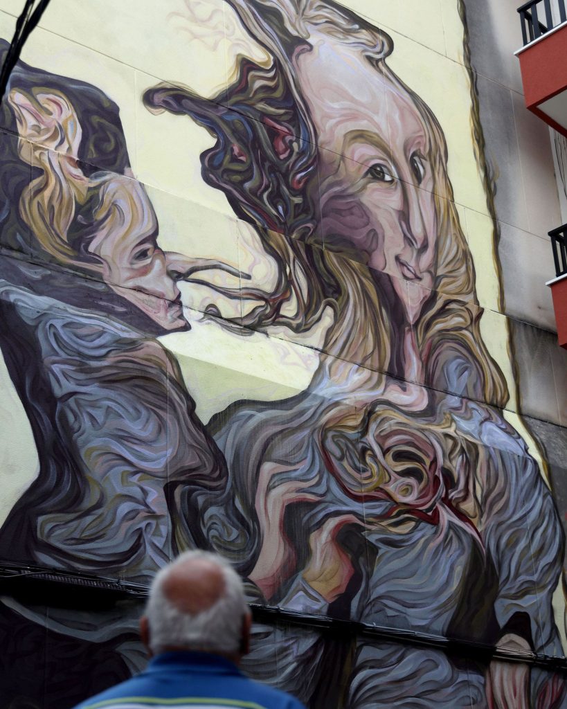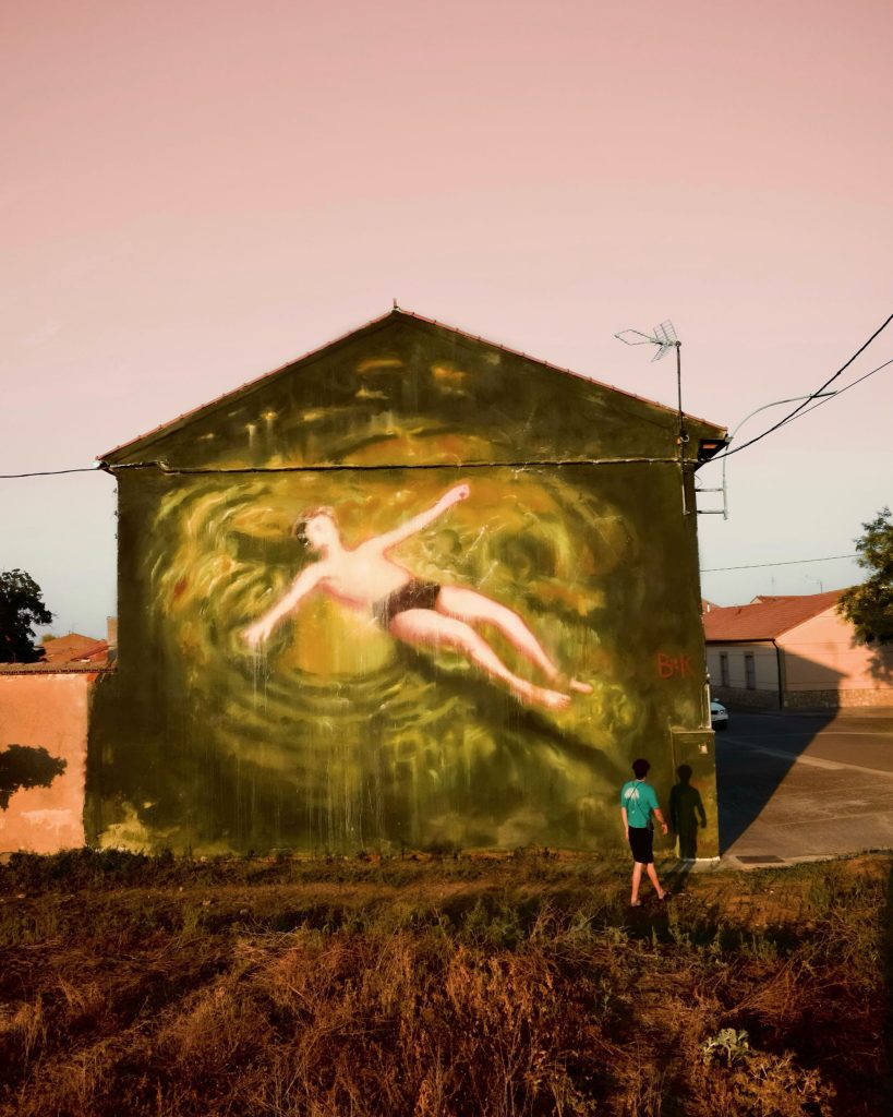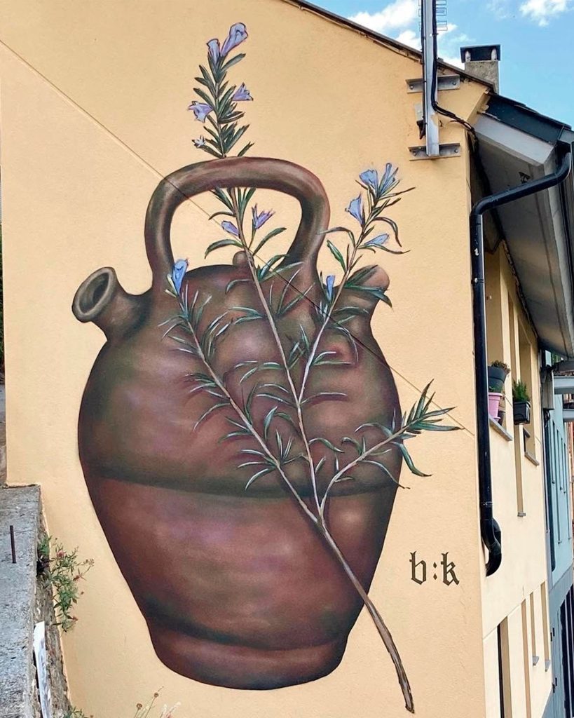 Autodidacta y con formación en animación 3D, B:K crea murales donde lo clásico y lo urbano se encuentran.